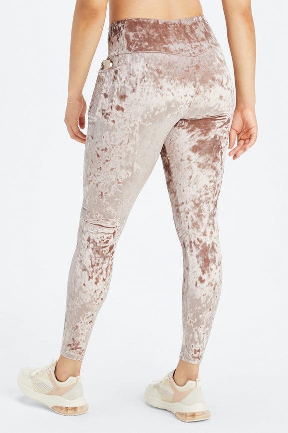 This crossover style in plush, velour fabric has a flattering silhouette for an elevated take on a yoga staple.